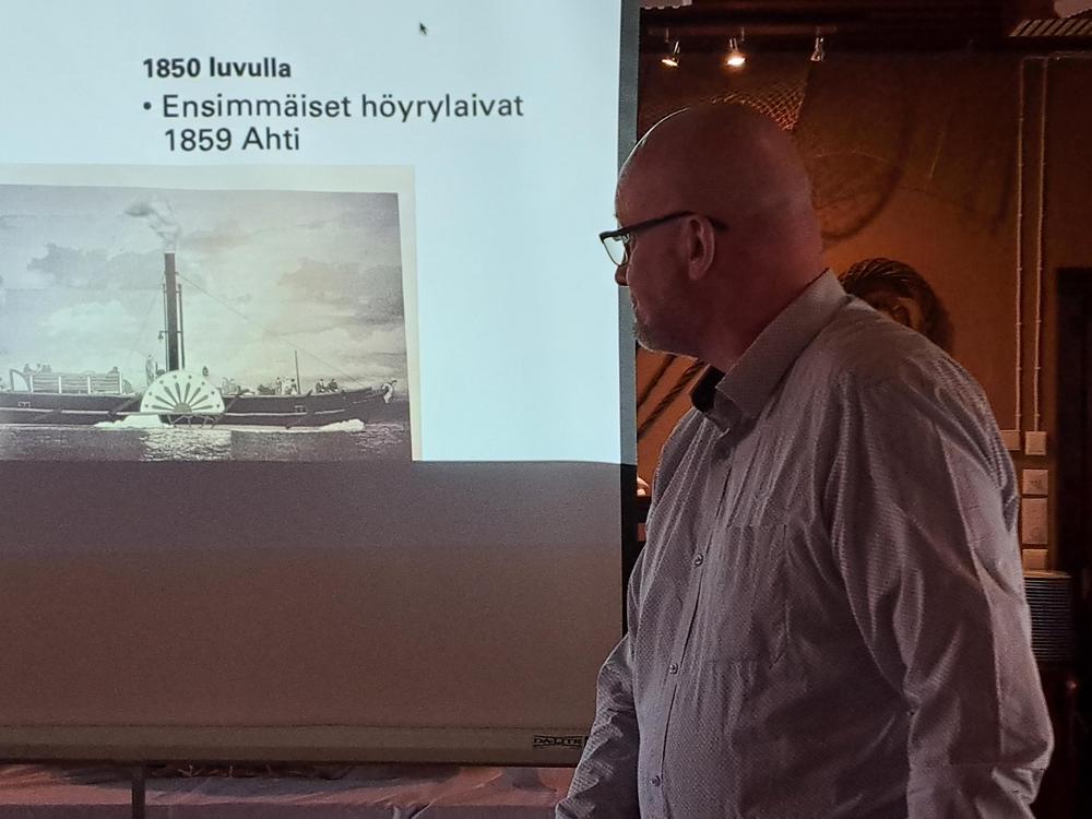 Tilaisuuteen saimme kaksi alustajaa. Tero Lahti (Höyrylaivayhdistys Näsijärvi II Ry) piti mielenkiintoisen esitelmän Teiskon ja laajemminkin Näsijärven höyrylaivaliikenteestä. Puhetta ja kysymyksiä riitti koko esityksen ajan. Monella oli joko henkilökohtaisia muistoja sekä matkustamisesta että laivaliikenteen persoonista. Puhuttavaa riitti myös Höyrylaiva Tarjanteen uudistuksesta. Pisimpään maailmassa samaa reittiä ajaneen höyrylaivan kesän 2023 suurena muutoksena on paluu halkojen käyttöön höyrykoneen polttoaineena, lähes kuudenkymmen vuoden tauon jälkeen!
